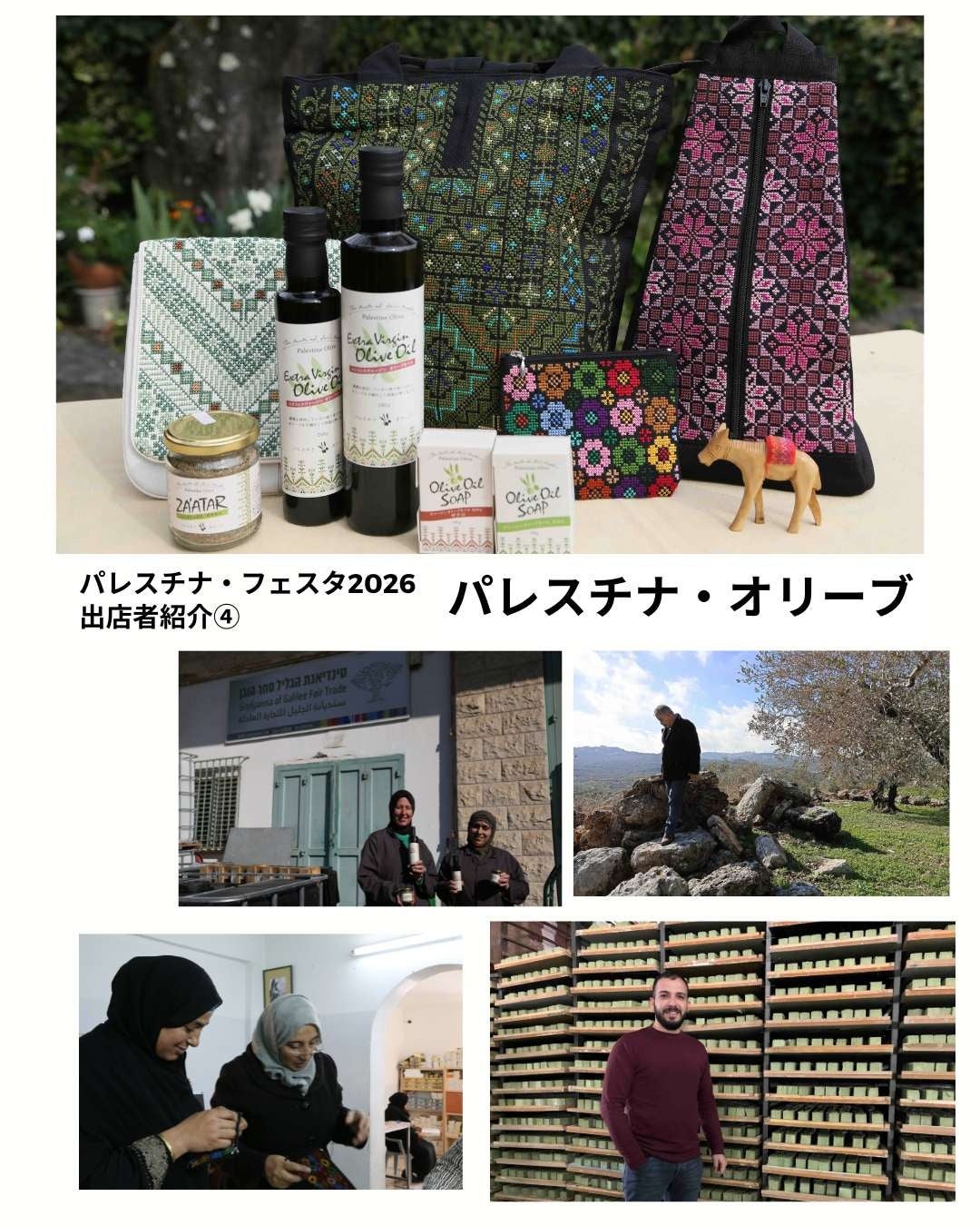 西岸地区)のオリーブオイル、オリーブ石けん、刺繍製品