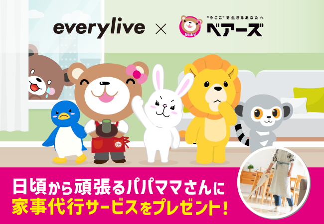 この度、エブリライブは家事代行サービス「ベアーズ」とのコラボレーションが決定しました。