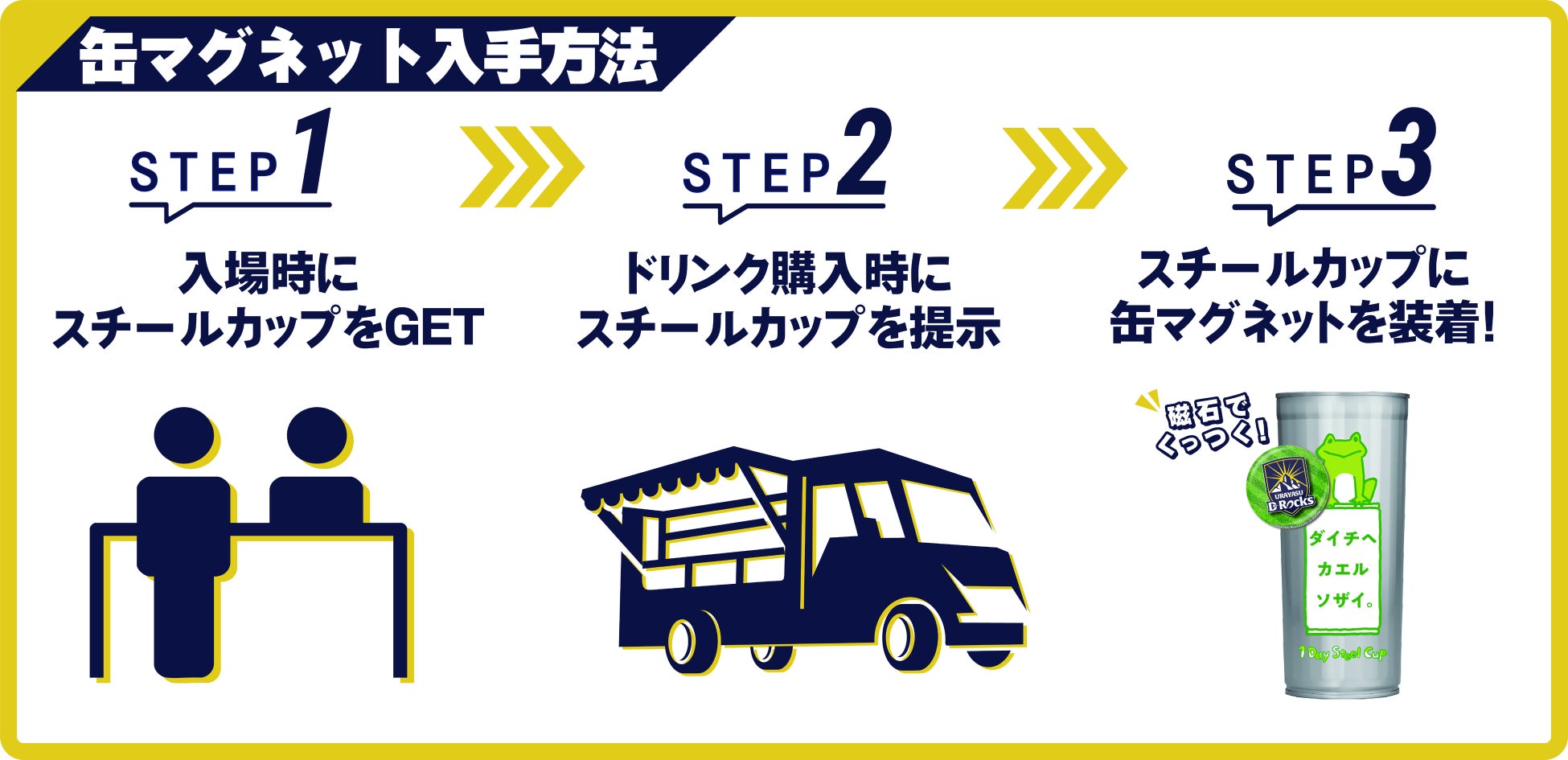 Dパーク内のキッチンカーでドリンク購入時に1Day Steel Cupを提示するとプレシーズンマッチ限定の缶マグネットがもらえるプレゼントキャンペーンを同時開催。キッチンカーでドリンク1点につき缶マグネット1個をプレゼントします。(全3デザイン/各100個限定)