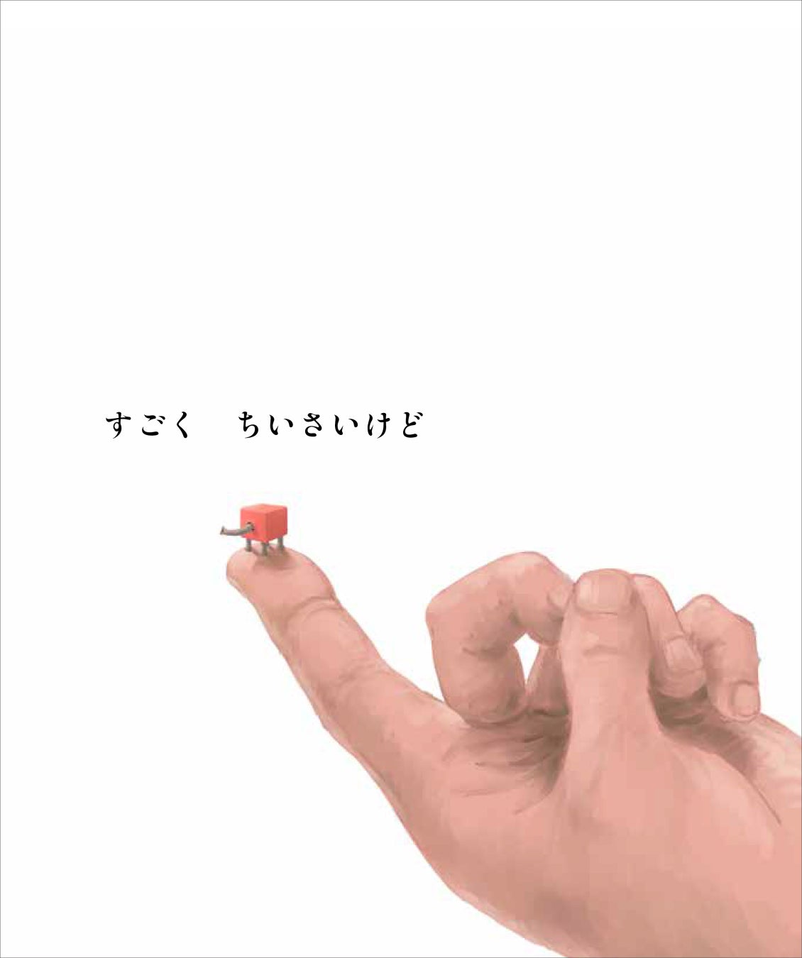 無機質な箱っぽい性質とゾウっぽい性質を、ちょうどいい配合で混ぜれたと思います。得体が知れないけどなんだか愛くるしい、ステキな絵本になりました。