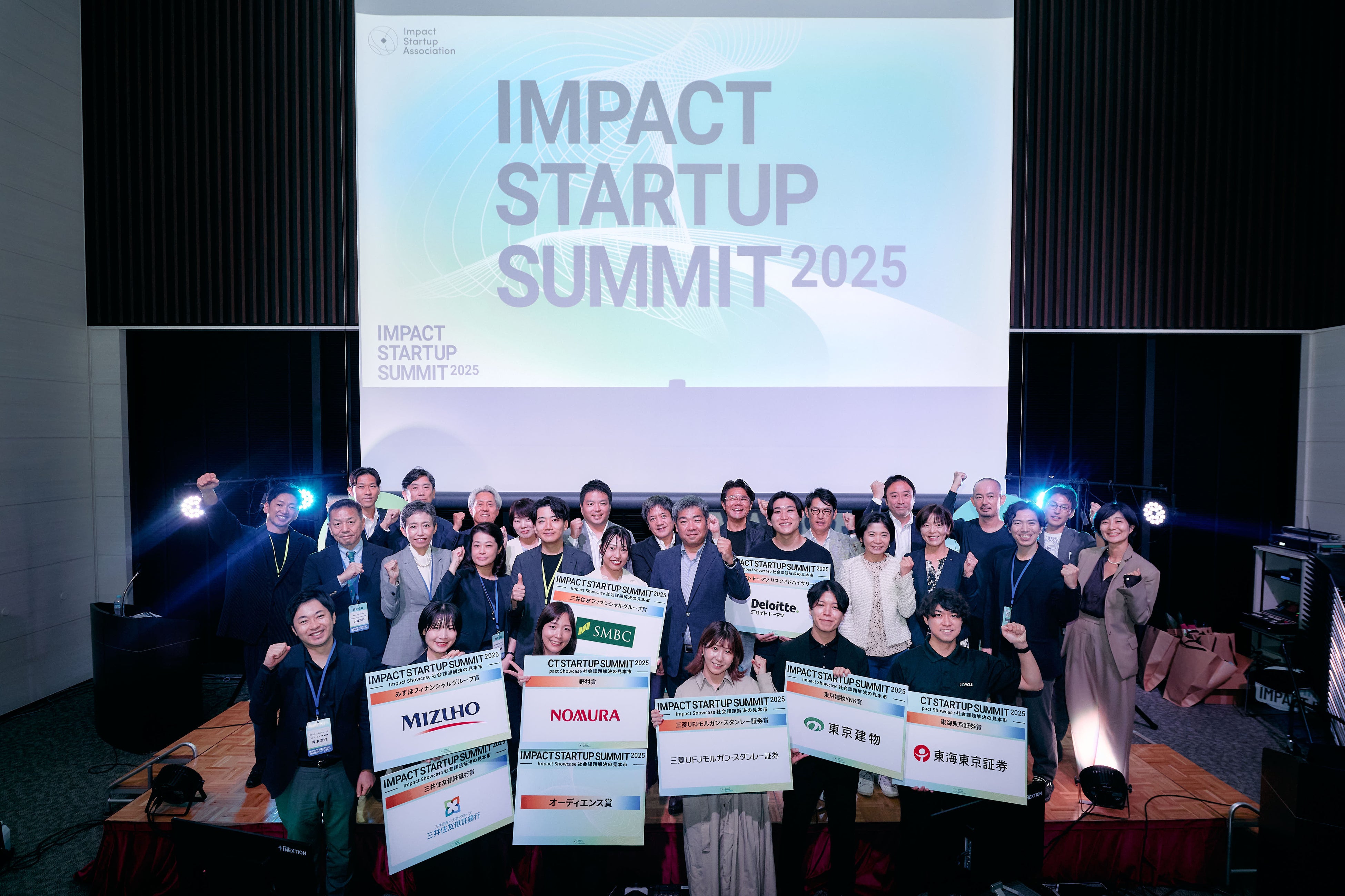 審査はISA賛同会員企業が担当し、総合評価による「インパクトスタートアップピッチ大賞」、オーディエンス投票による「オーディエンス賞」、さらに各賛同企業が選出する「デロイト トーマツ リスクアドバイザリー賞」「東海東京証券賞」「東京建物YNK賞」「野村賞」「みずほフィナンシャルグループ賞」「三井住友フィナンシャルグループ賞」「三井住友信託銀行賞」「三菱UFJモルガン・スタンレー証券賞」の計10賞が授与されました。