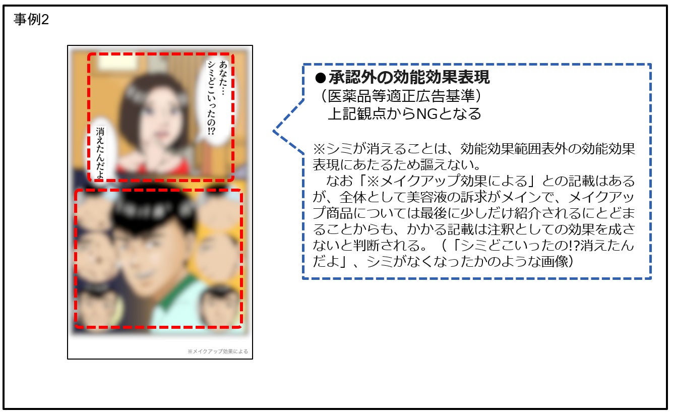化粧品(薬用化粧品含む)に該当する商材について、医薬品等適正広告基準に違反している表現