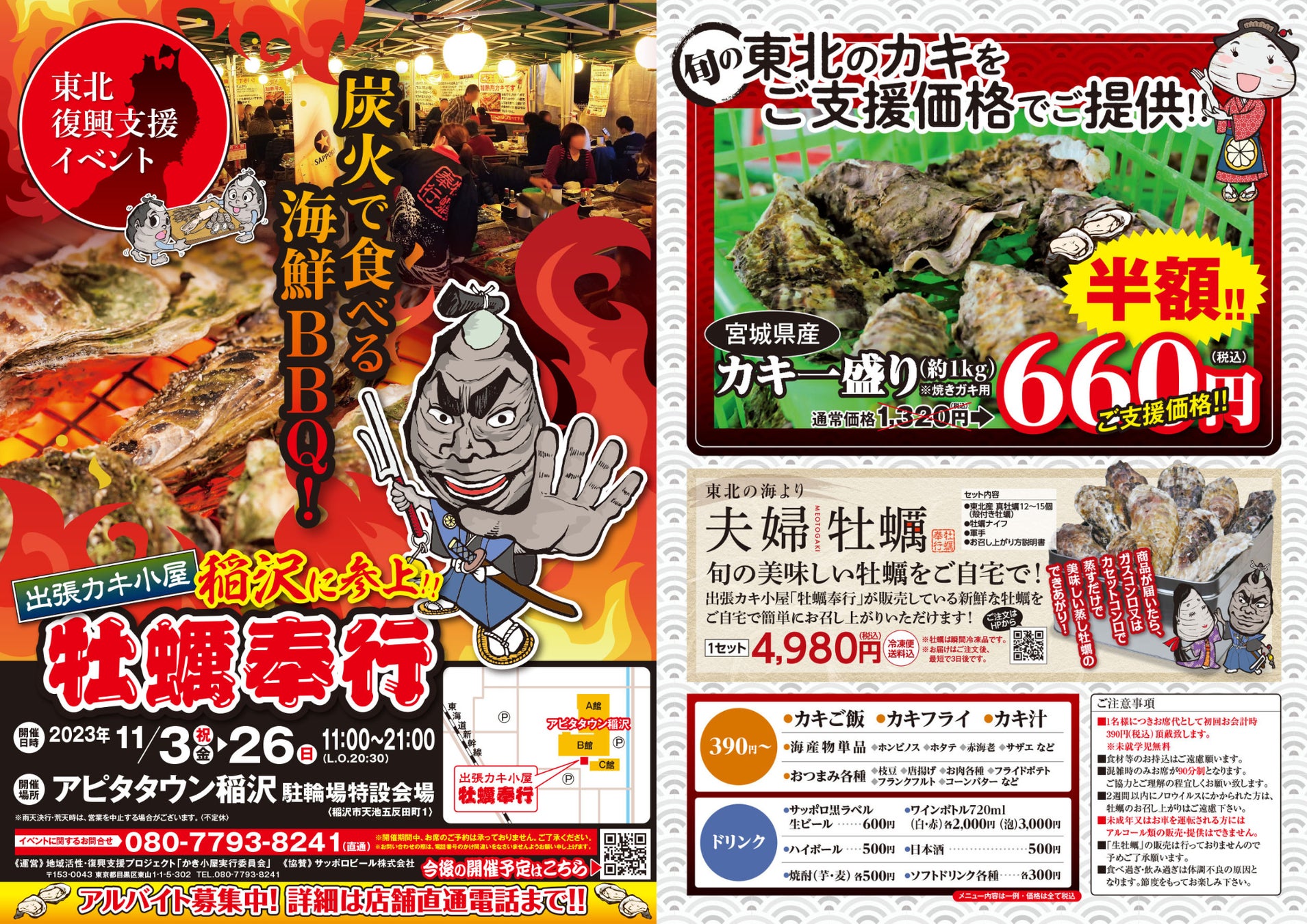 通常1,320円を、東北復興支援価格としてなんと1盛り660円で提供する。(※生食用牡蠣の提供は無し)