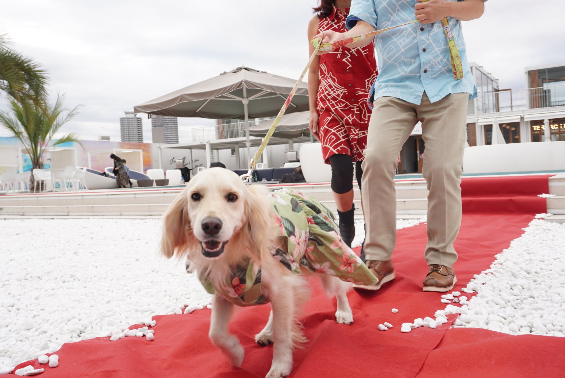 キラナで一番の映えスポット、プールエリアにレッドカーペットが登場!素敵なお洋服で写真撮影が可能です。