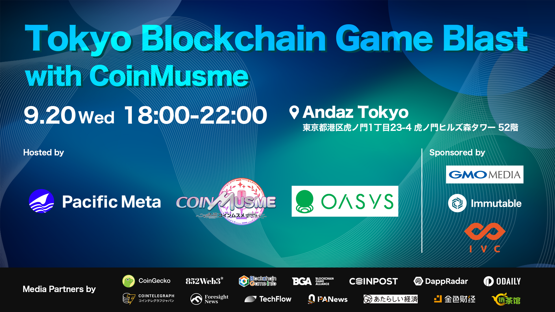 グローバルに展開するWeb3企業による「Tokyo Blockchain Game Blast with CoinMusme」が9月20日(水)に開催!(9月12日追加スポンサーの発表!)
