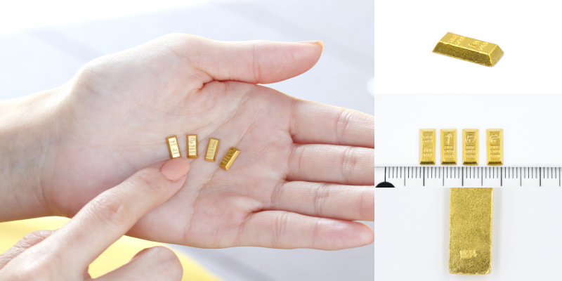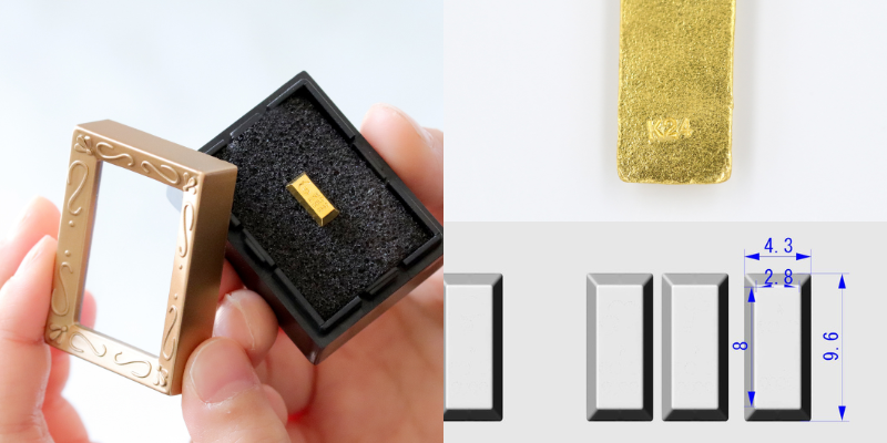 この商品は、表面のデザインのマークの部分や全体をお好きにデザインできますので、会社のロゴやブランドのロゴ、何か残したい言葉や形などから、御社オリジナルのインゴットを作る事が可能です。ラインナップは、1グラムが中心で、ご希望であれば、10グラムなども作成可能です。※複雑なデザインは、出来ないものもございます。