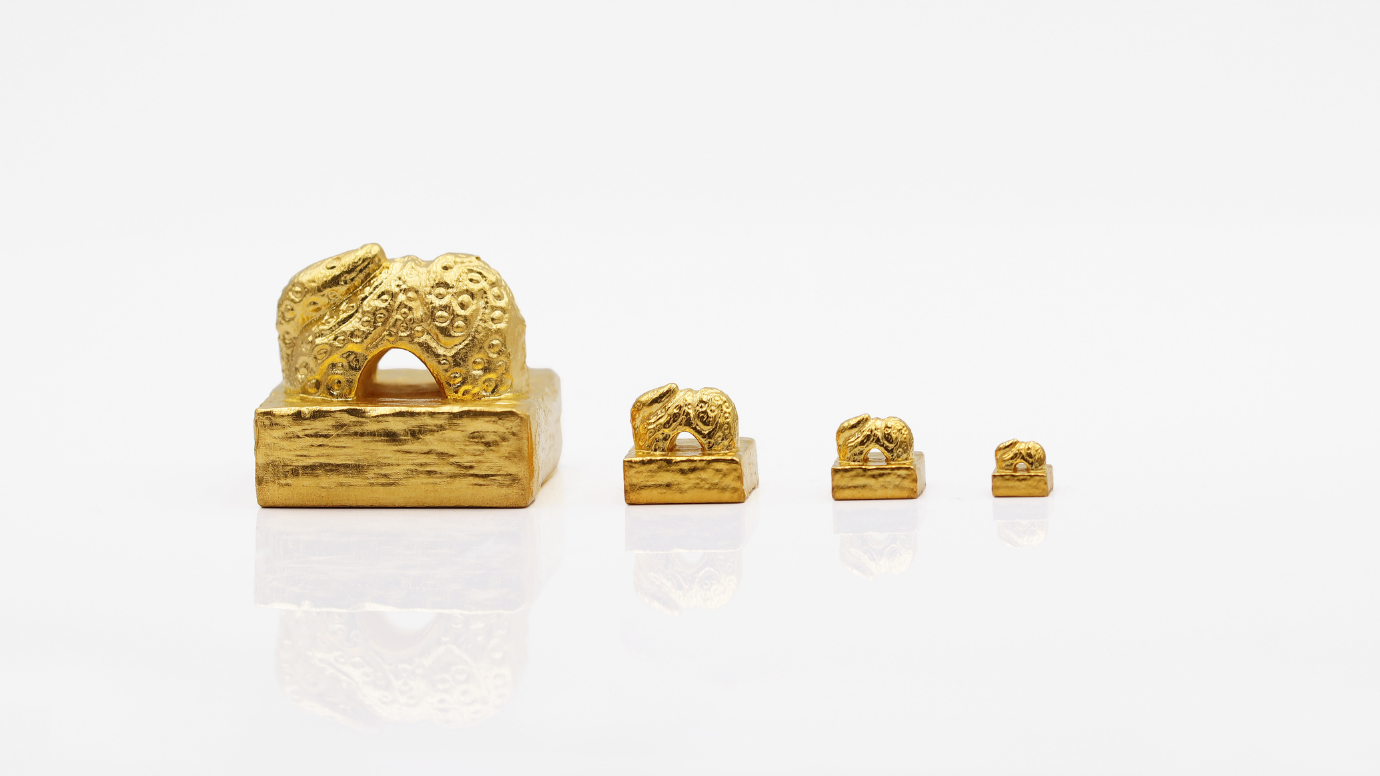 オリジナルデザインのインゴットと金印を製作します。