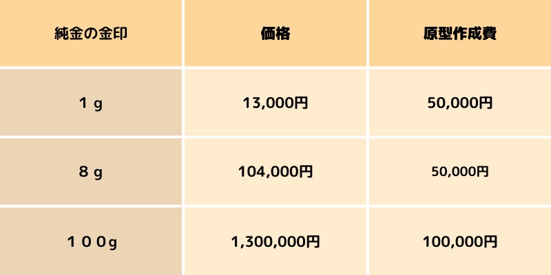 本来のデザインは、裏側の刻印部分には「漢委奴国王」の文字が入りますが、これをオリジナルに変える事が可能です。大きさの種類は1グラム、3グラム、8グラム、そして原寸大の100グラムまで制作可能です。