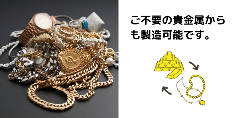 お持ちのご不要な貴金属も純金に交換可能です