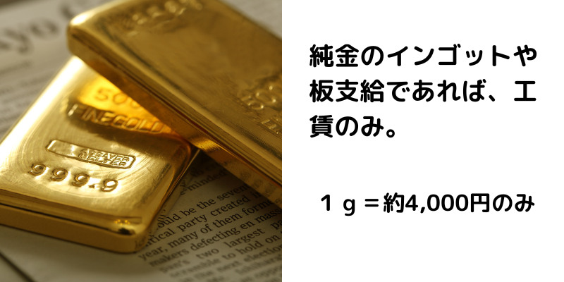 純金のインゴットや板をお持ち場合、地金支給という形で、工賃サービス料のみで製造可能です。