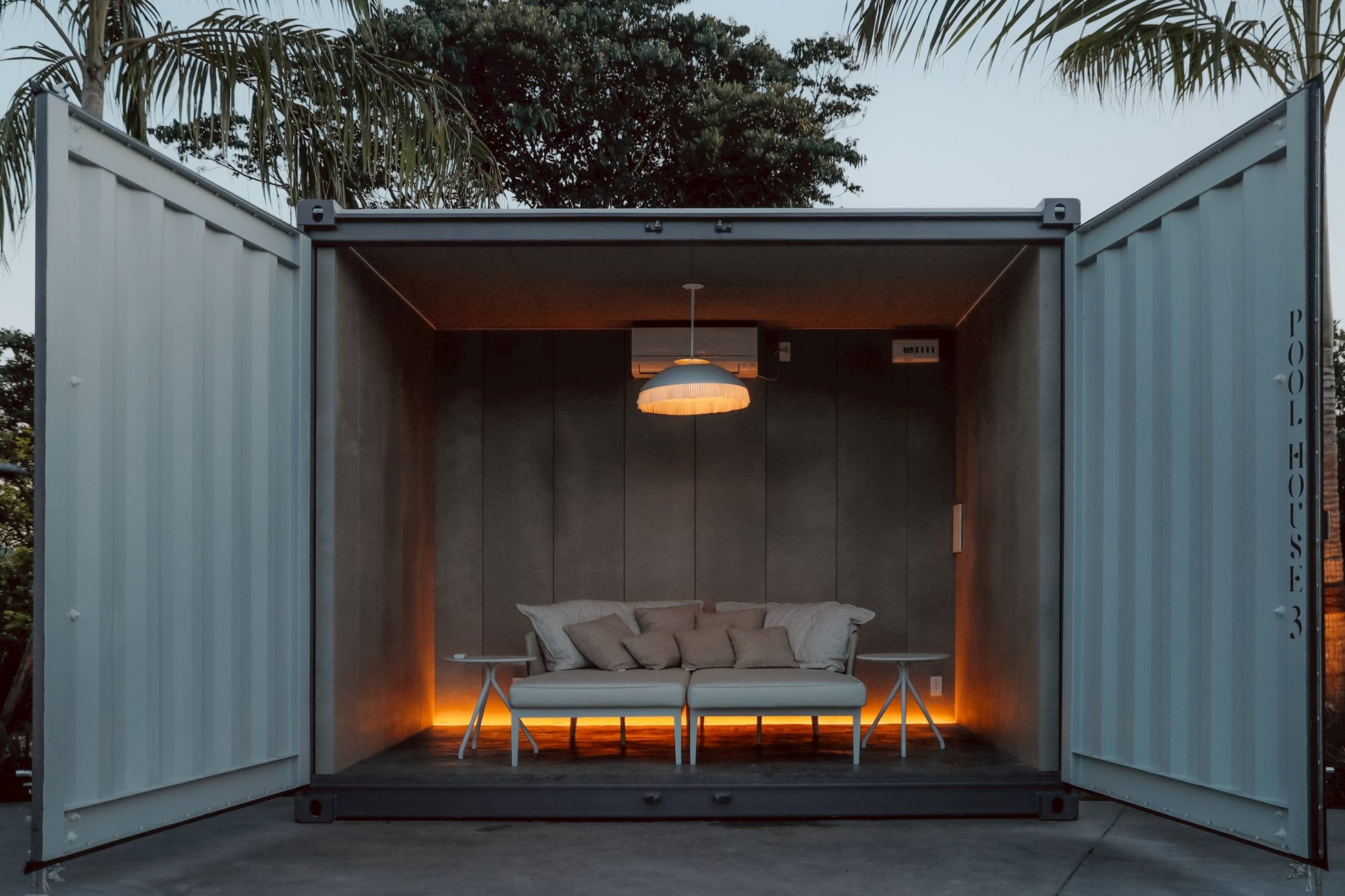 プールサイドに設置されたBOXサウナ。全面ガラス張りの大きな窓からボタニカルビューを楽しめます。サウナの後は、チラーで冷やされた冷水シャワーを浴びてプールにダイブするのもBPCならではの楽しみ方。