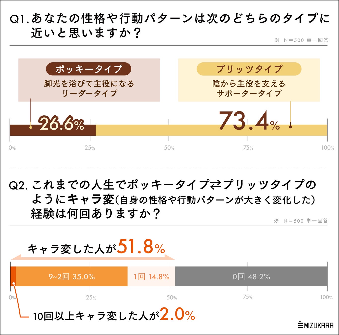 認知科学に基づくコーチングを法人・個人に提供する株式会社ミズカラ(本社:東京都千代田区、代表取締役 山宮健太朗)は、2025年10月21日(火)に25歳~59歳の既婚有職男女500名を対象とした「ポッキー&プリッツと日本人のキャラ観」に関する意識・実態調査を行いました。