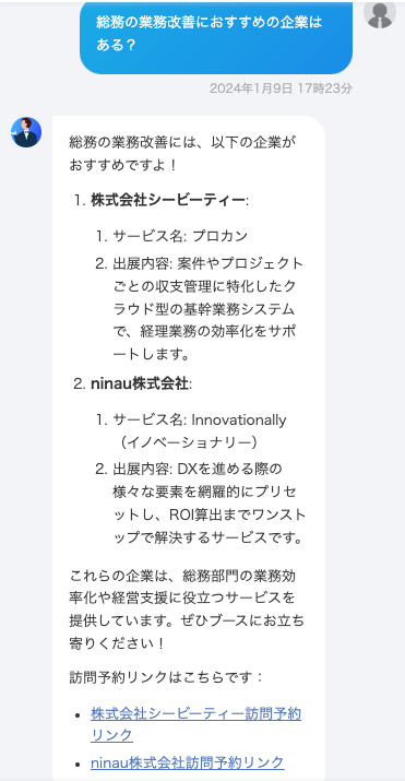 「ビジネスIT & SaaS EXPO(BIS)2024 」の会場案内チャットボットに生成AIチャットシステム『Kasanare』が採用されました