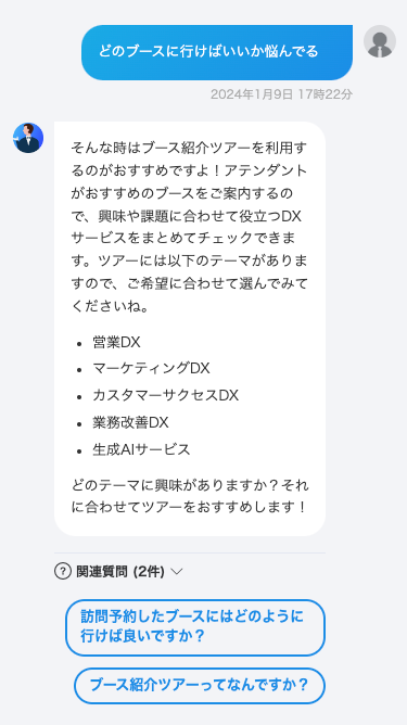 来場登録を行うことで、実際に「生成AIによる会場ガイド」をご体験いただけます。