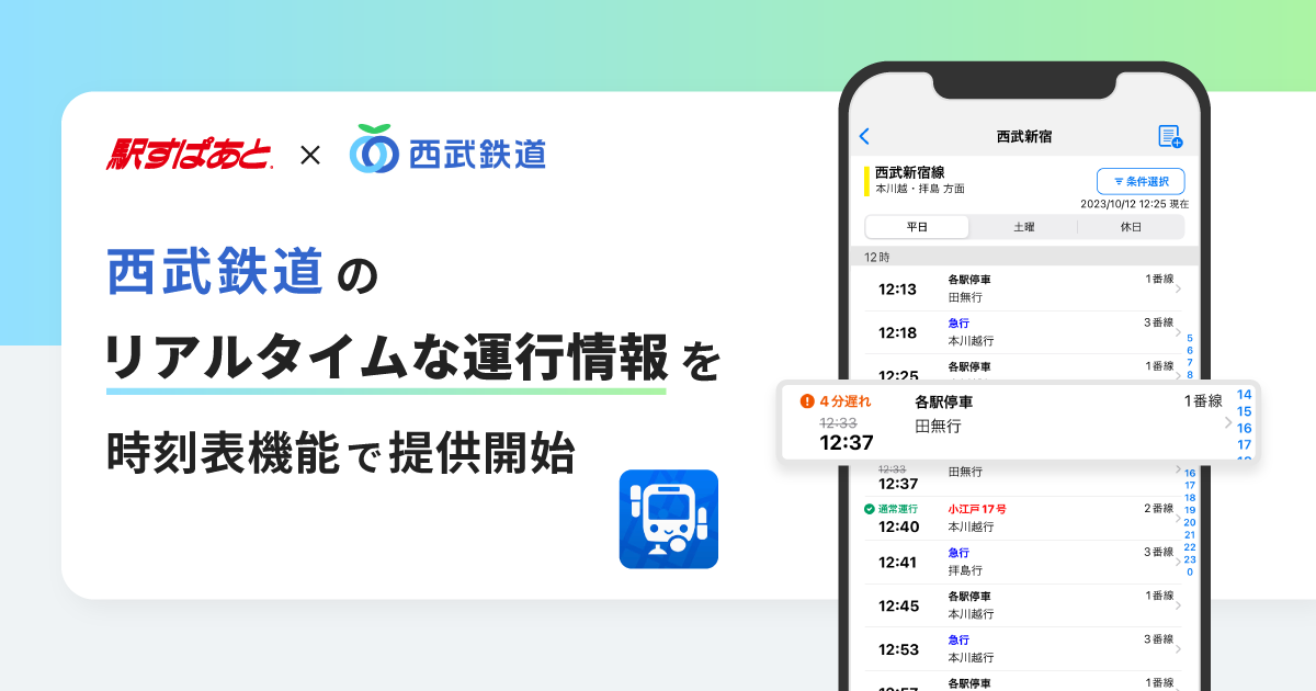 「駅すぱあとアプリ」が西武鉄道のリアルタイムデータと連携開始