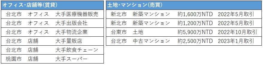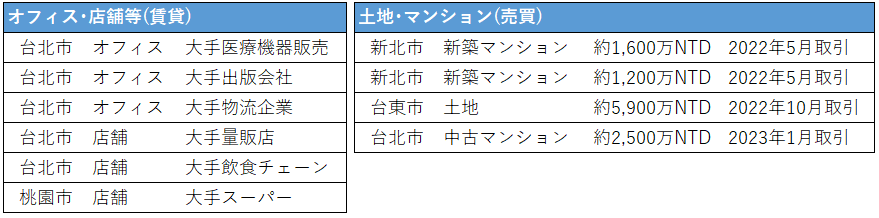 <台湾人の日本不動産取引実績(抜粋)>※直近約一年以内の主な取引事例