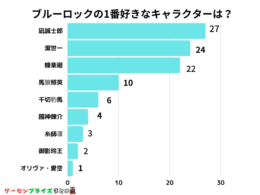 合同会社Makima(https://makima.co.jp/)が運営するゲームセンター情報メディア「ゲーセンプライズまとめ」(https://cocoaorei.work/prize/)は、日本全国の10代以降の男女の方を対象に「ブルーロックの中で1番好きなキャラクターはなんですか?」についてのアンケート調査を実施しました。
