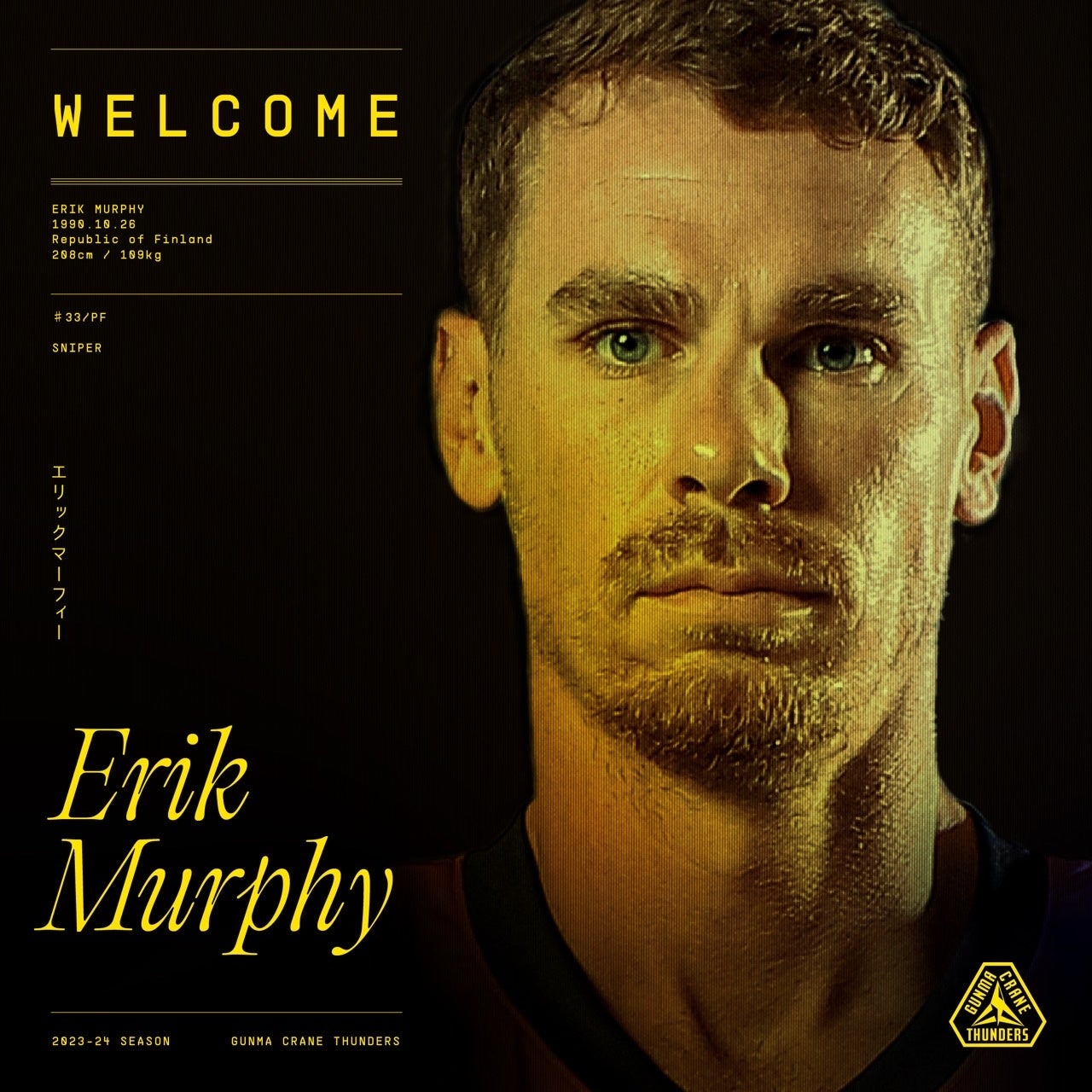 「この度、群馬クレインサンダーズでは、エリック・マーフィー選手とのBリーグ2023-24シーズン選手契約(新規)が締結されましたのでご報告いたします。