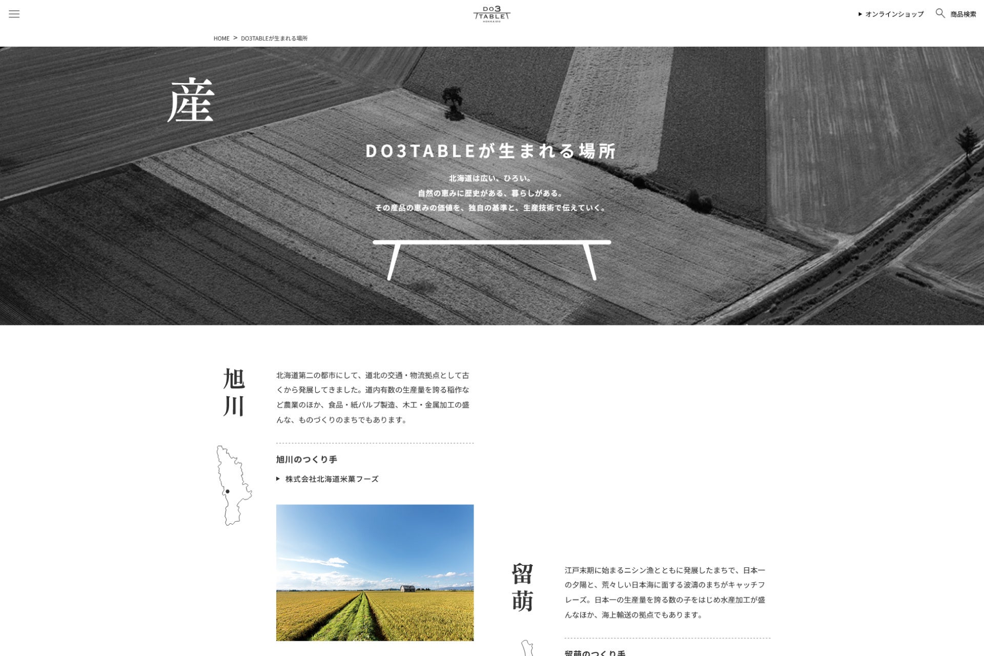 広大な北海道は、地域によって歴史・文化・恵みを育んできました。「DO3TABLE」が生まれる産地・地域の紹介をご覧いただけます。