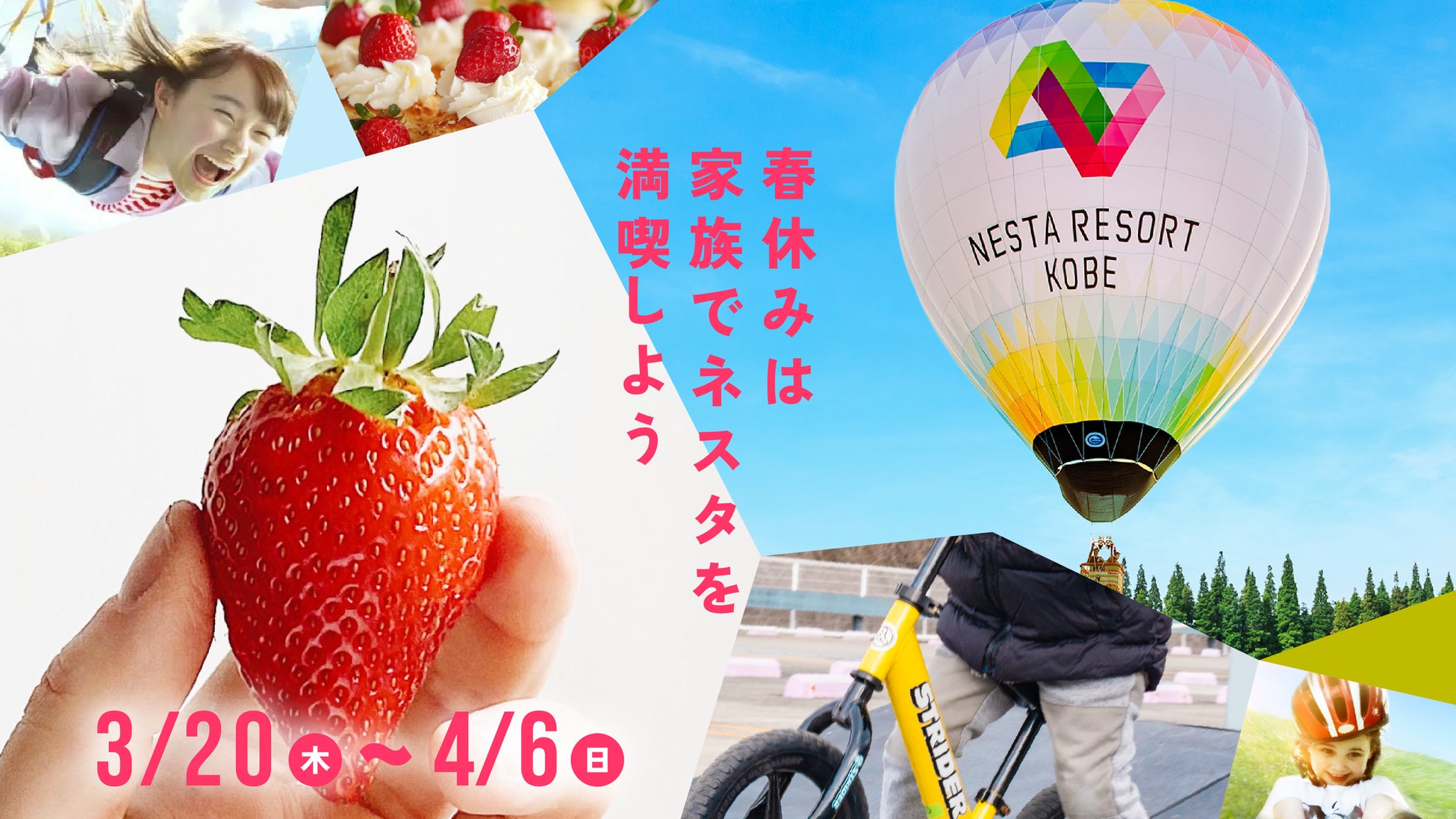 ネスタリゾート神戸で春の大自然を感じられる気球体験「ネスタで熱気球!スカイ・アドベンチャー」、いちごをテーマとした春ならではのグルメや縁日を気軽に楽しめる「Strawberry hunt(ストロベリーハント)」など、ネスタリゾート神戸で春のワクワクが詰まったイベントをお楽しみください。