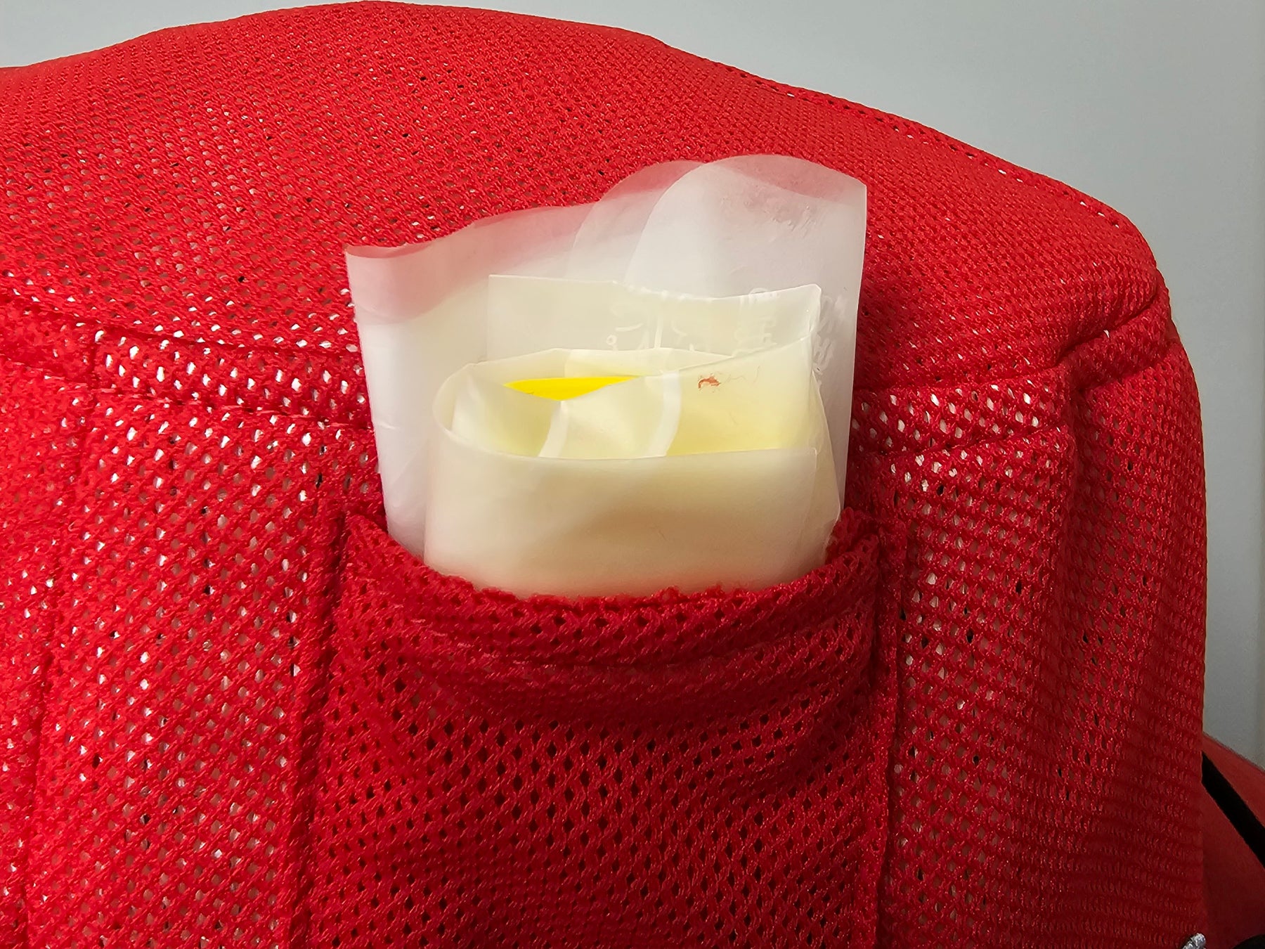 人工呼吸用のマウスシールドや感染対策用の手袋などを帽子の側面ポケットに収納でき、いざという時の応急救護対応をスムーズにサポートします。