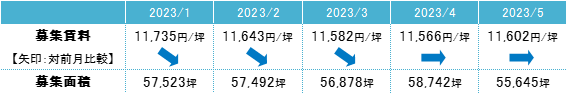 ※募集面積: 各統計日において公開されているテナント募集中面積の合計