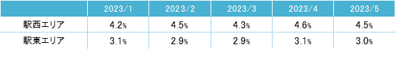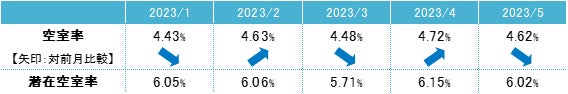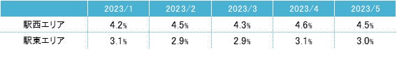 空室率は前月比マイナス0.10ポイントの4.62%となり、再び低下した。拡張移転や分室開設により成約し、主な低下要因となった。空室率は7ヵ月連続で4%台の低水準となっている。潜在空室率は前月比マイナス0.13ポイントの6.02%だった。オフィス需要は小口の面積帯が中心となっているが、採用活動でのプラス効果を目的とした立地改善等、前向きな動きが多い状況が続いている。