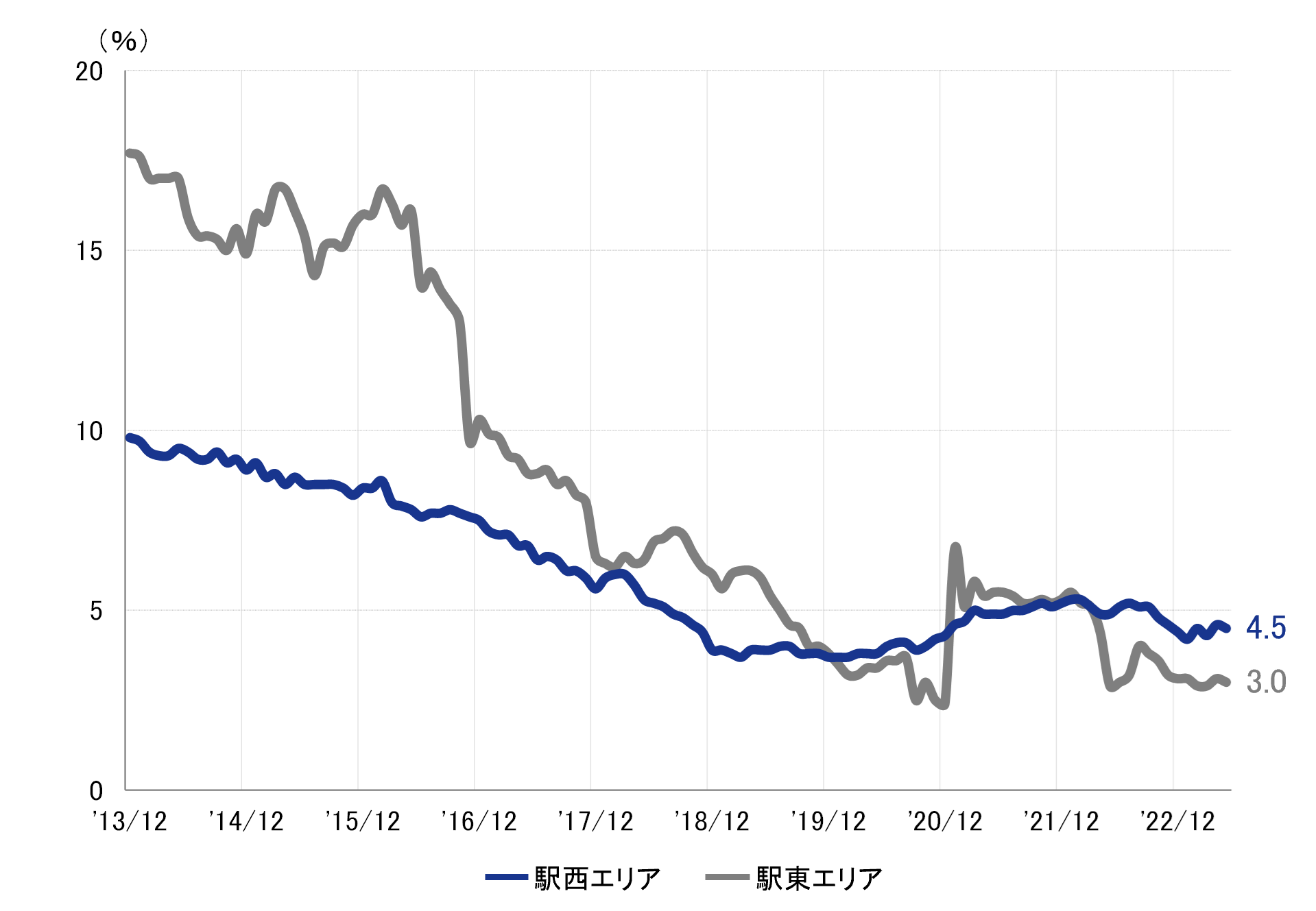 主要2エリアとも小幅に低下