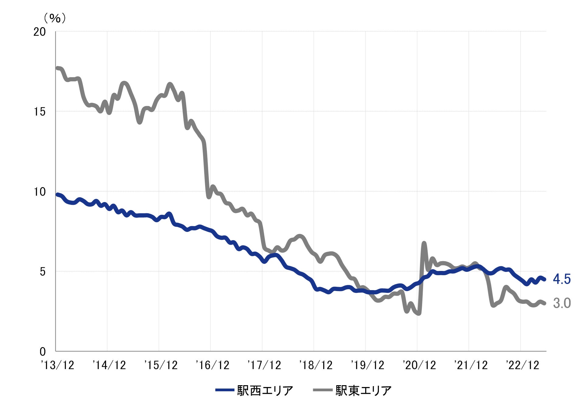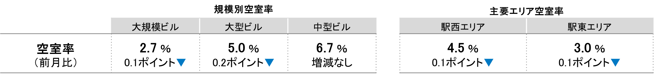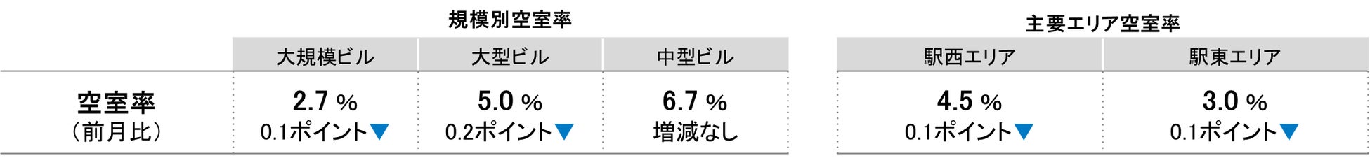 全規模ビル 主要エリア 空室率:主要2エリアとも小幅に低下