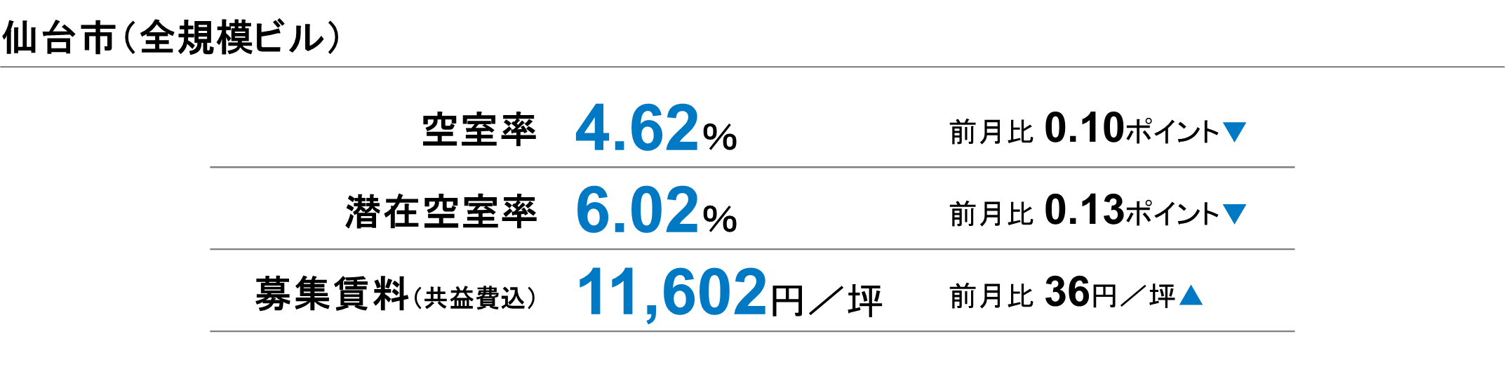 仙台市 全規模ビル 主要エリア 空室率