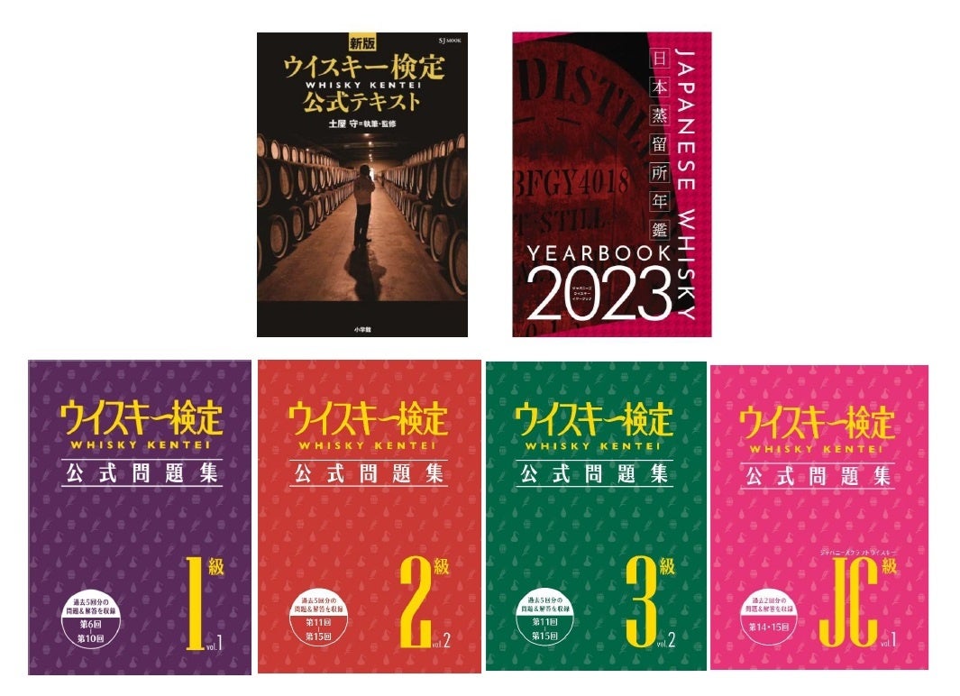 また、ウイスキーの定義や原料から、製造工程、世界5大ウイスキーの歴史や蒸留所の紹介など、ウイスキーの基本をあますところなく説明している「新版 ウイスキー検定公式テキスト」、日本国内の蒸留所約80ヵ所を紹介している「ジャパニーズウイスキーイヤーブック2023」のほか、過去問題集や参考資料も充実していますので、効率的に勉強していただけます。