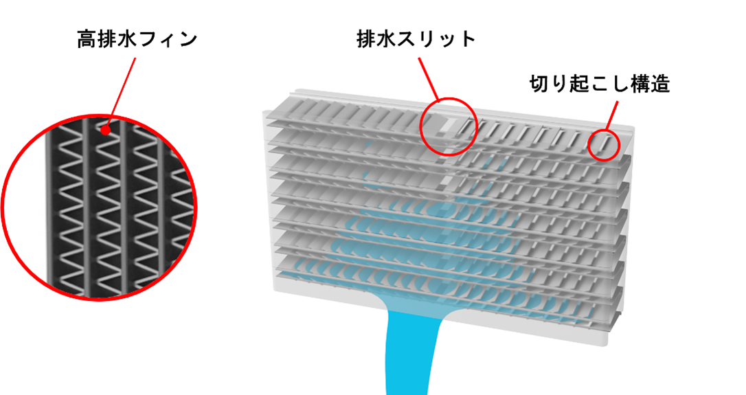 ・業界で初めて(※2)、水を高速に排水する新構造の導水流路を設けた高排水フィンを開発