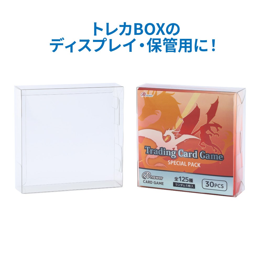 本製品はトレーディングカードBOXを箱のまま収納して、ディスプレイ用途やコレクション用途にお使いいただけるPVC素材のクリアケースです。ご使用いただくことで、ホコリや汚れから大切なトレカBOXを守ります。