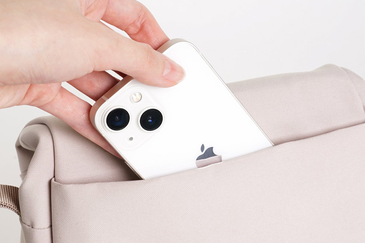 出し入れが多いスマートフォンなどは背面のスリップポケットへ。