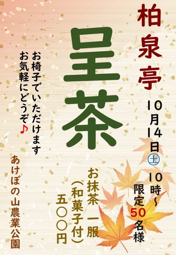 ■受付:当日、直接開場へ ※お茶菓子が無くなり次第終了となります