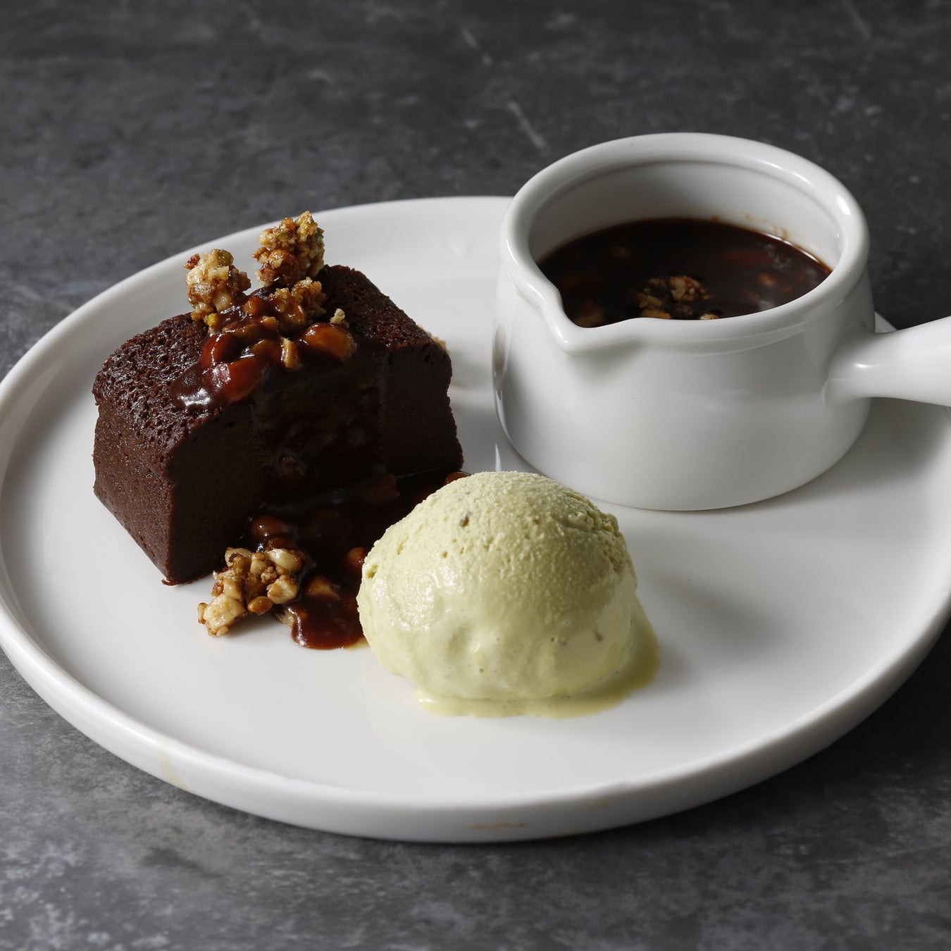 ビーツを練り込んだ濃厚なガトーショコラケーキ。シナモンが香る、熱々のトフィーソースをかけてお召し上がりください。
