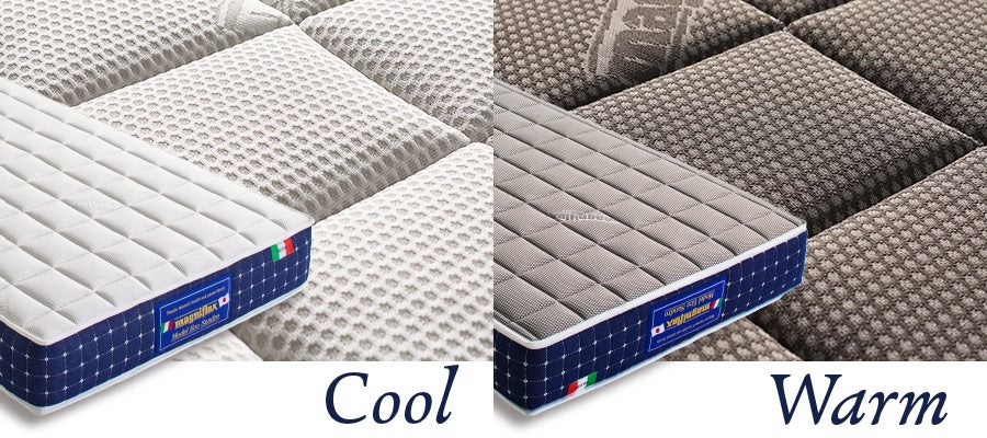 表面のCOOL仕様は、トッパーシリーズの最高峰にも採用された冷感素材を採用。熱発散性が高く、夏の熱帯夜でもムレにくくさわやかな寝心地です。裏面のWARM仕様は、マニフレックス社初の「温感生地」を。身体から発する微弱な赤外線で温かさが高まり、秋から冬にかけて快適にお使いいただけます。
