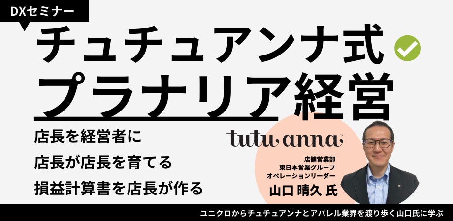 本ウェビナーでは、ユニクロからチュチュアンナとアパレル業界を経てきた山口氏に、「店舗経営」実現に向けたロードマップと手段としてのDXについてご講演いただきます。店舗運営関係者必見のウェビナーです。