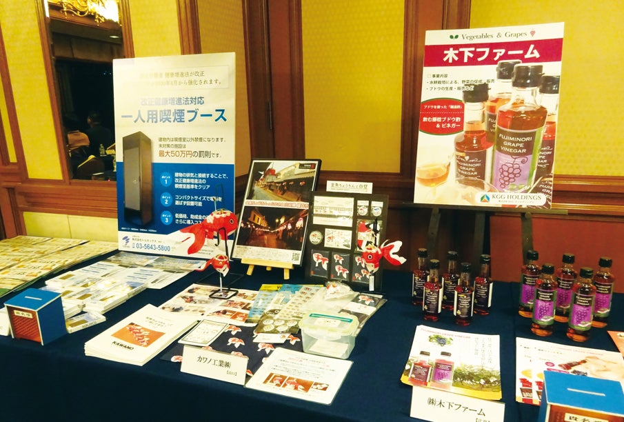 会場には展示スペースも設けられ、参加企業による自社PRや販路開拓も可能。