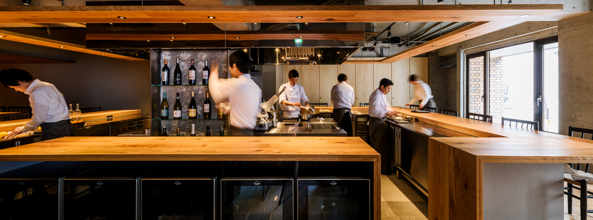 オープンキッチンのため、調理シーン・盛り付け・サービスの瞬間にも密着可能。