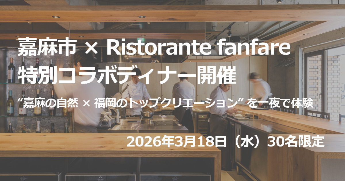 株式会社かまと株式会社アプリップリは、福岡市中央区・大名の人気イタリアン「Ristorante fanfare」にて、嘉麻市の厳選6食材を用いた特別ディナーイベント 「Kama-City × Ristorante fanfare 2026 vol.1」 を開催いたします。