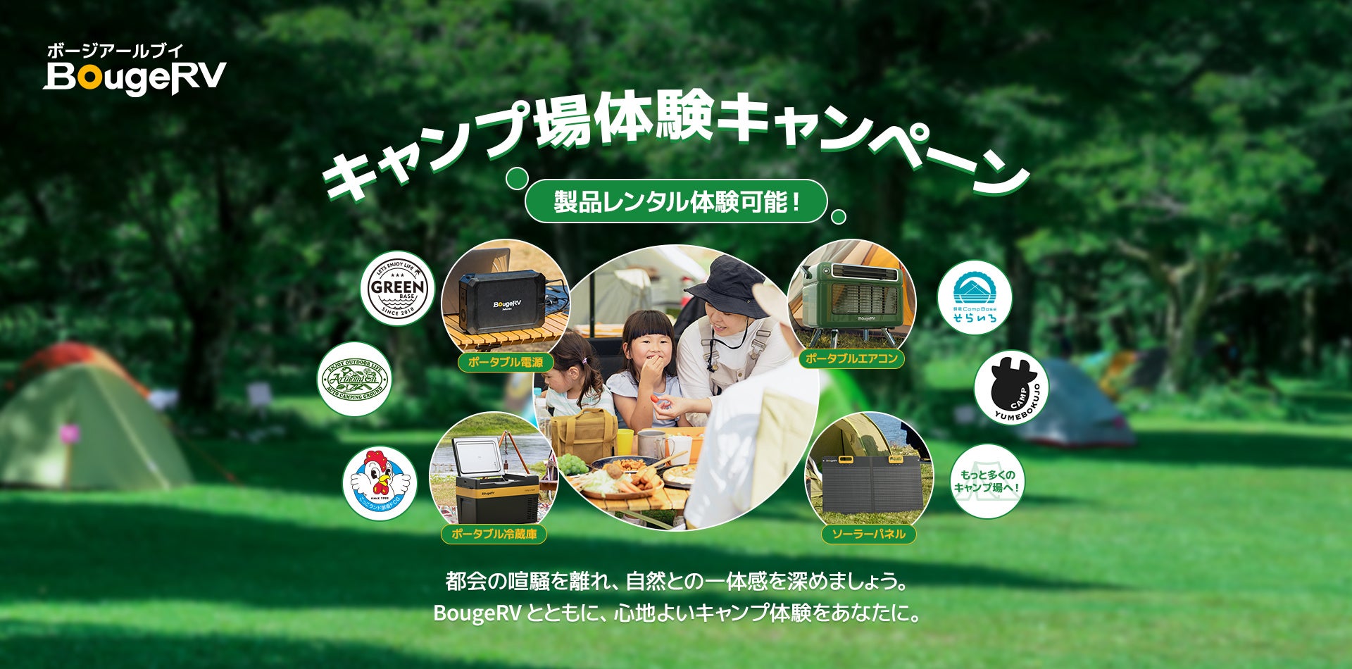 BougeRV製品をご使用いただいたことがある方もない方にも実際にキャンプ場にて製品を体験いただき魅力を感じられる機会としてコラボキャンペーンを実施することとなりました。