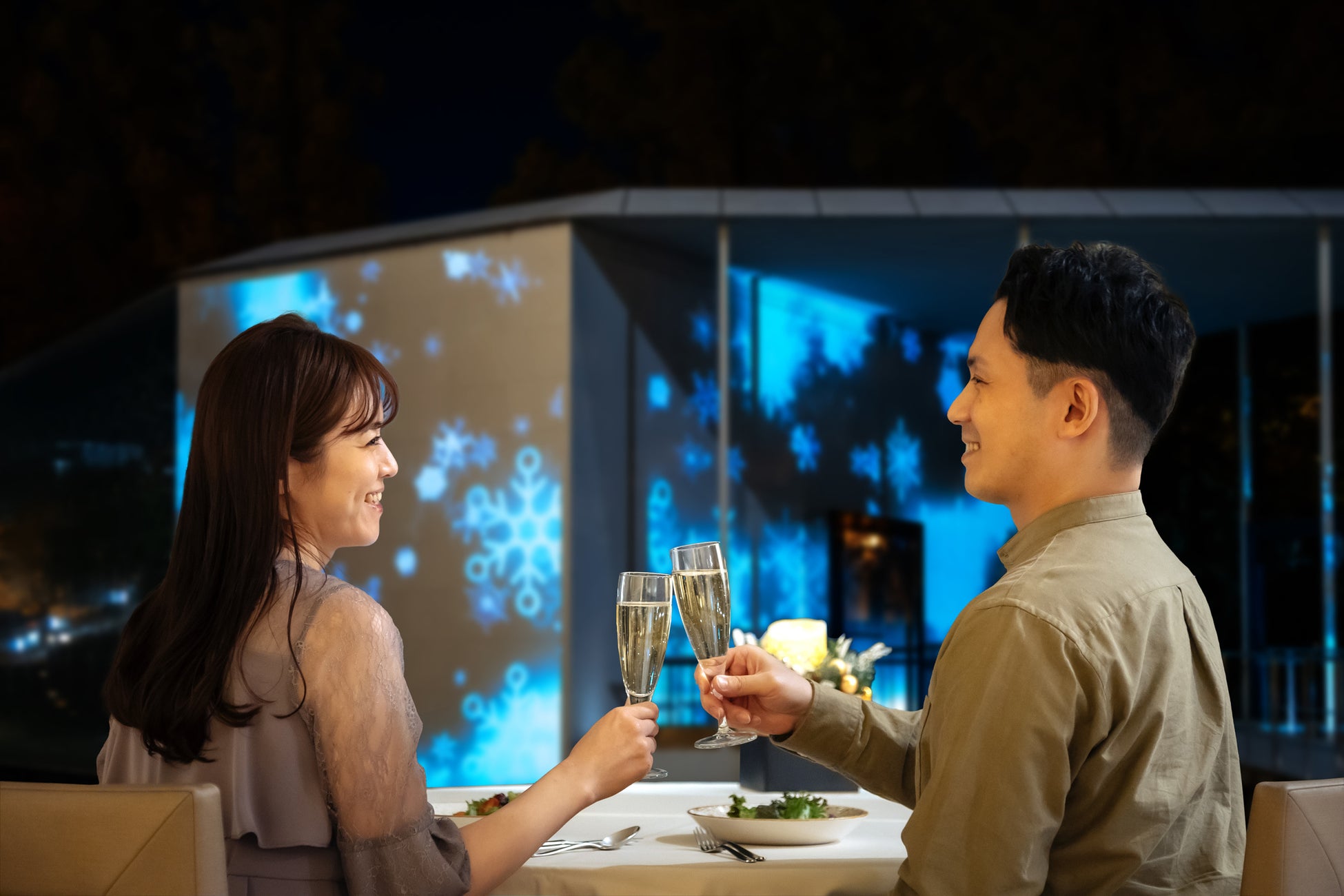 イベントをディナーと共に楽しむ特等席として「ピュア・ナターレ」をご用意いたします。澄みきった美しいクリスマスの情景をイメージして名付けました。柔らかくなるまでじっくり煮込んだ国産牛ホホ肉の煮込みや、白い霧の中からスイーツが現れる演出を用いたデザートなど、趣向を凝らしたイタリアンメニューをご堪能いただけます。お料理とのペアリングを楽しむワインには、地元大阪の現存する西日本最古のワイナリーとして知られる「カタシモワイナリー」(大阪府柏原市)より、ソムリエが現地に足を運びセレクトしたワインをご提案。演出や特別料理とともに、大切な方とのエクスクルーシブなディナータイムをお過ごしいただけます。