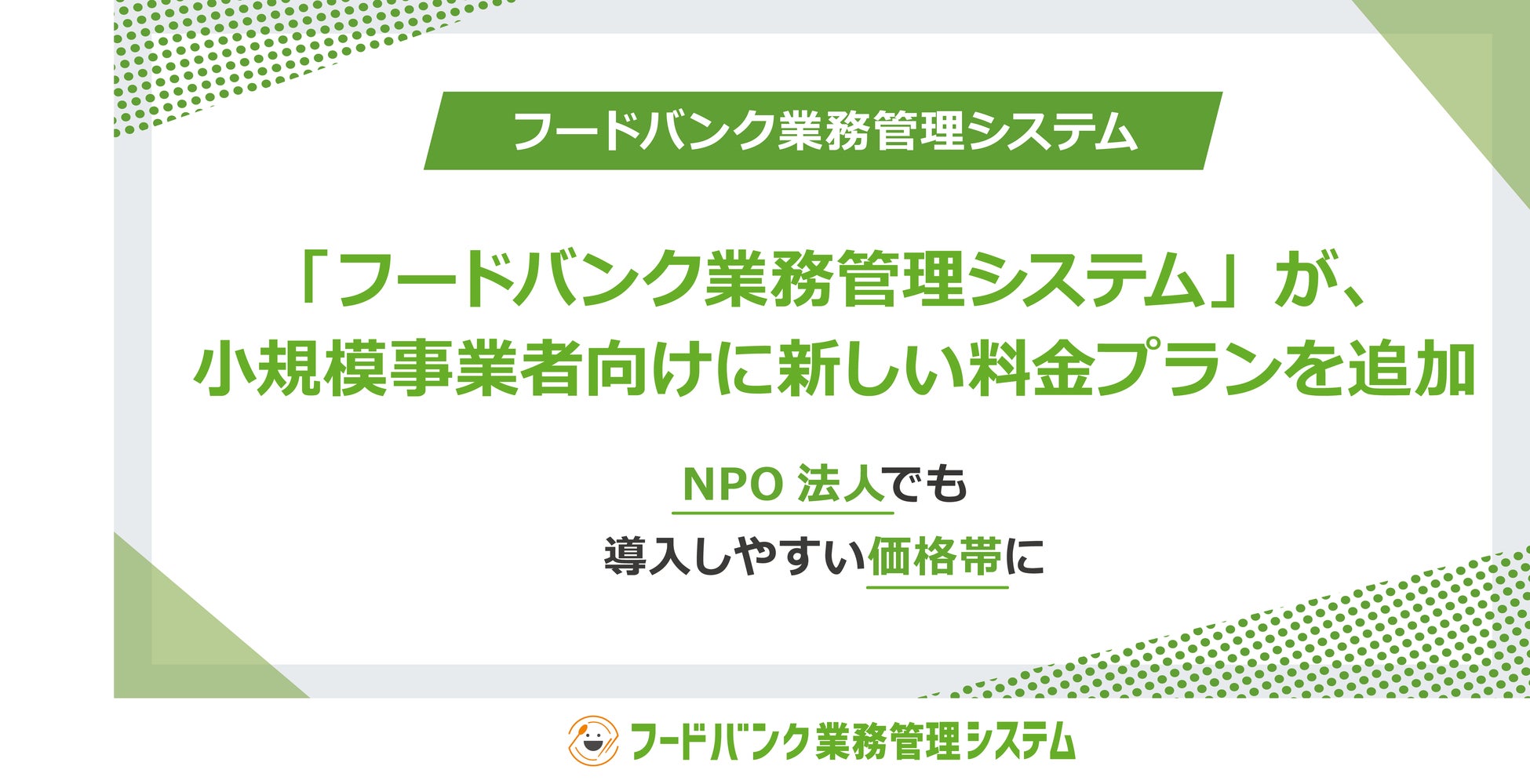 「フードバンク業務管理システム」が、小規模事業者向けに新しい料金プランを追加