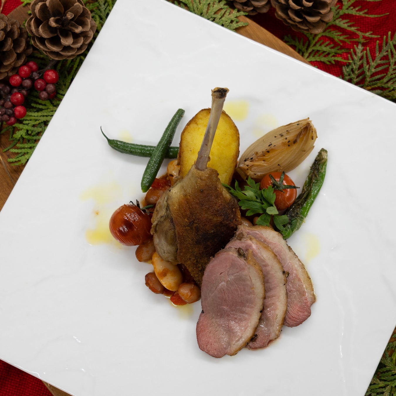 チェリバレースノーホワイト(滝川産鴨)のレッグコンフィと胸肉のスモーク