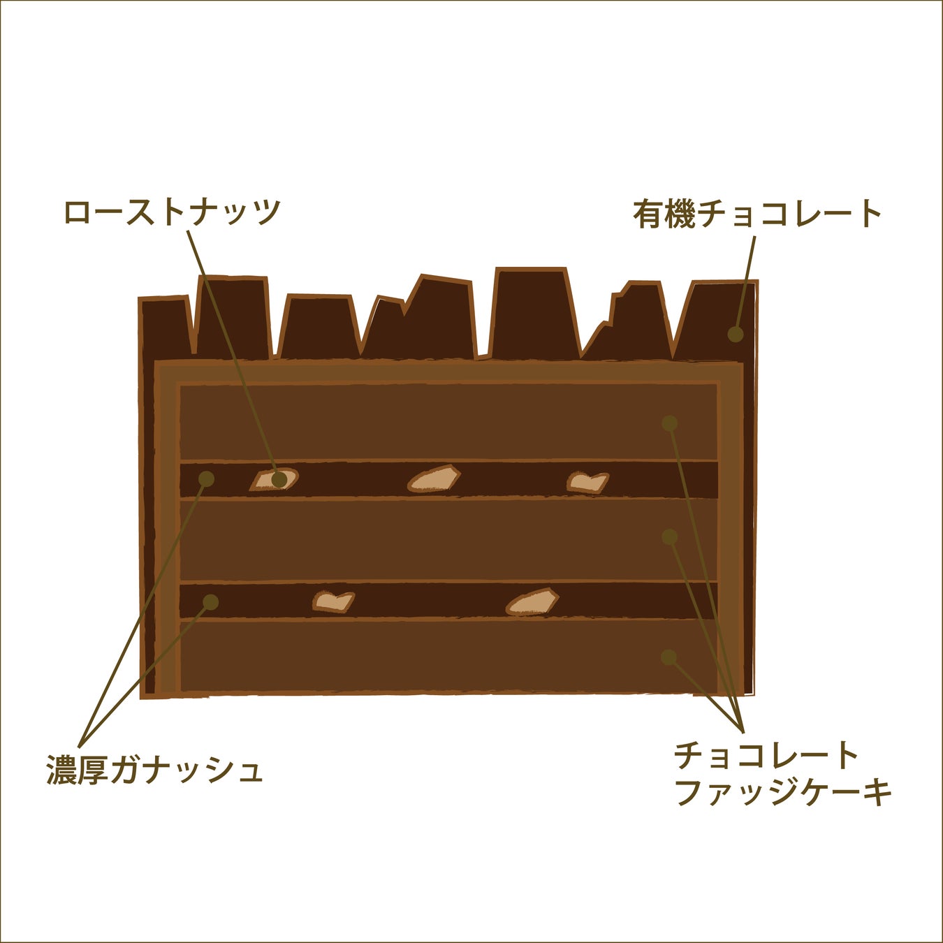 ローストナッツの食感がアクセントの、チョコレート好きにはたまらない濃厚な味わいです。