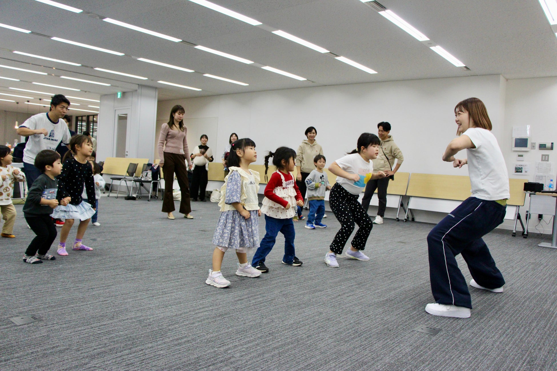 プロダンサーでもある社員が講師となり、音楽に合わせて体を動かしながら体力の向上やリズム感を身につけるキッズダンス体験を実施しました。