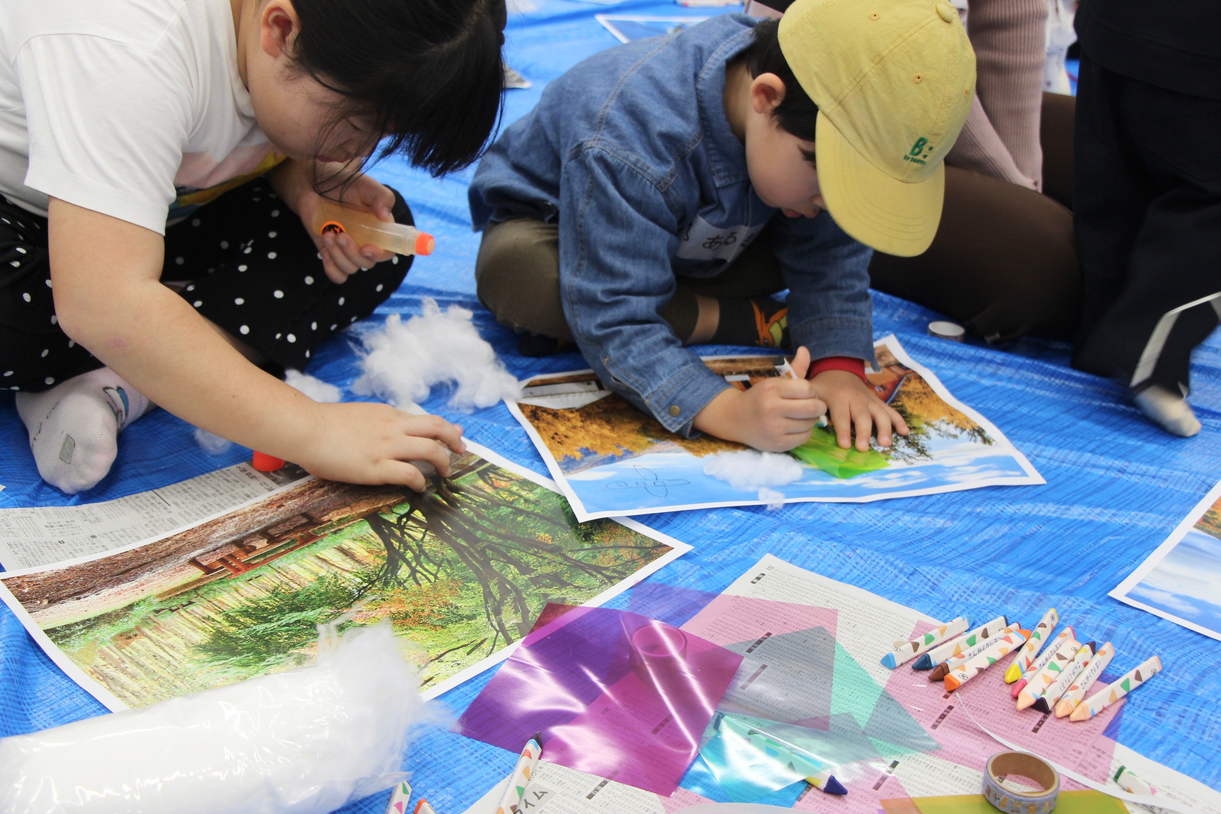 社員が講師となり、印刷した写真にお絵描きしたり、折り紙や綿などを使って装飾したりと自由な発想でアレンジをしていく、創造力と表現力を養うワークショップを実施しました。