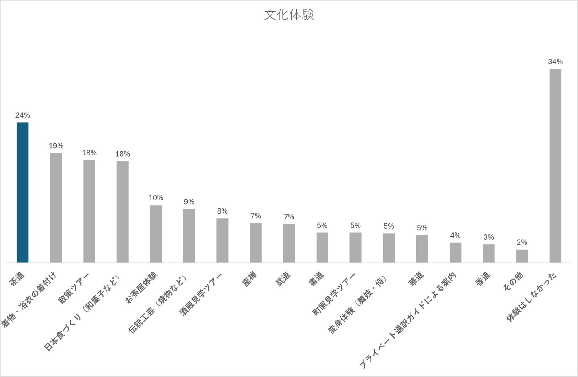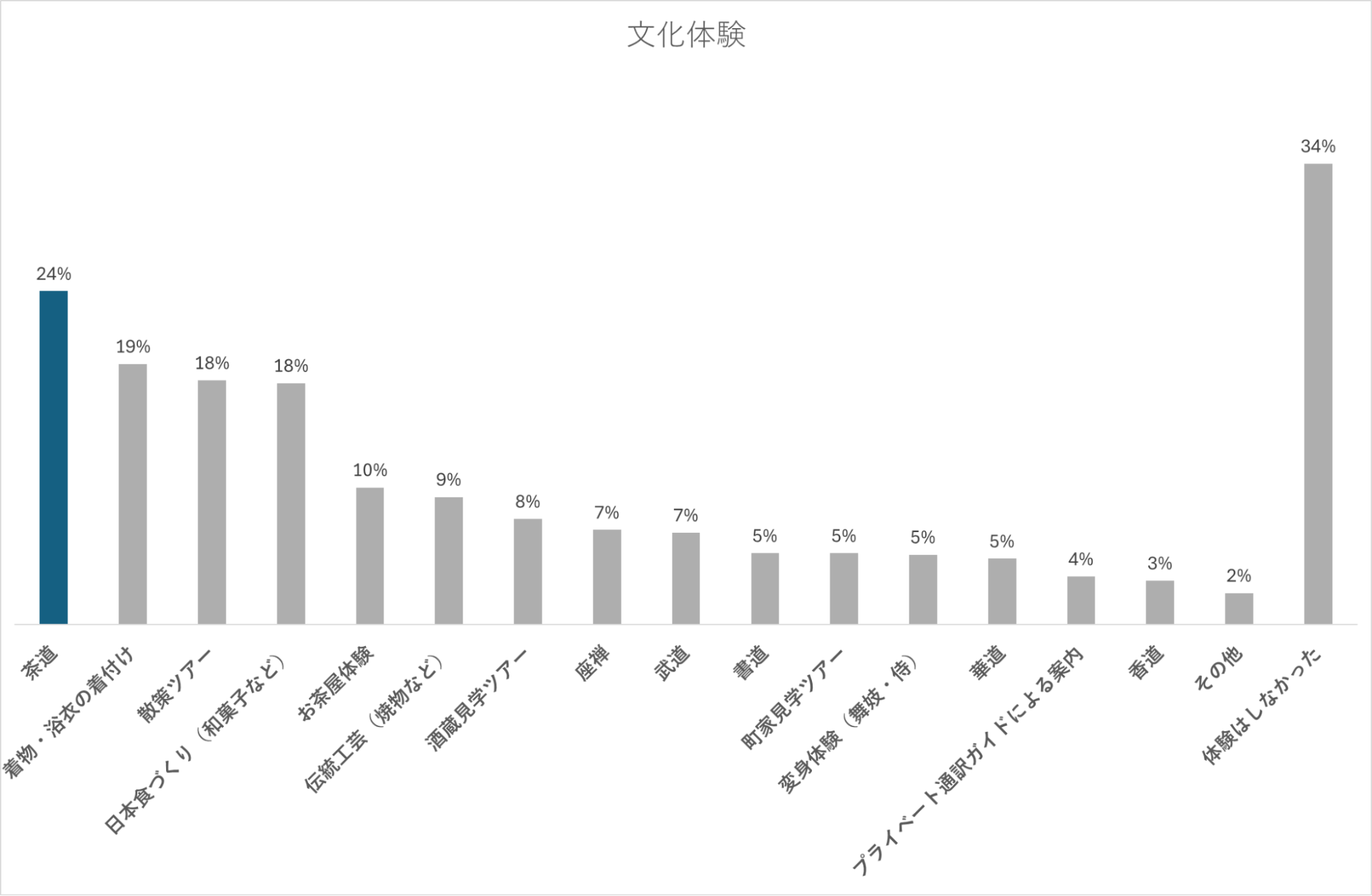 同じく人気のある着物・浴衣の着付け体験と比較すると特に欧米の観光客に高い人気を有していることから、欧米におけるコト消費への高い関心の表れであると言えます。