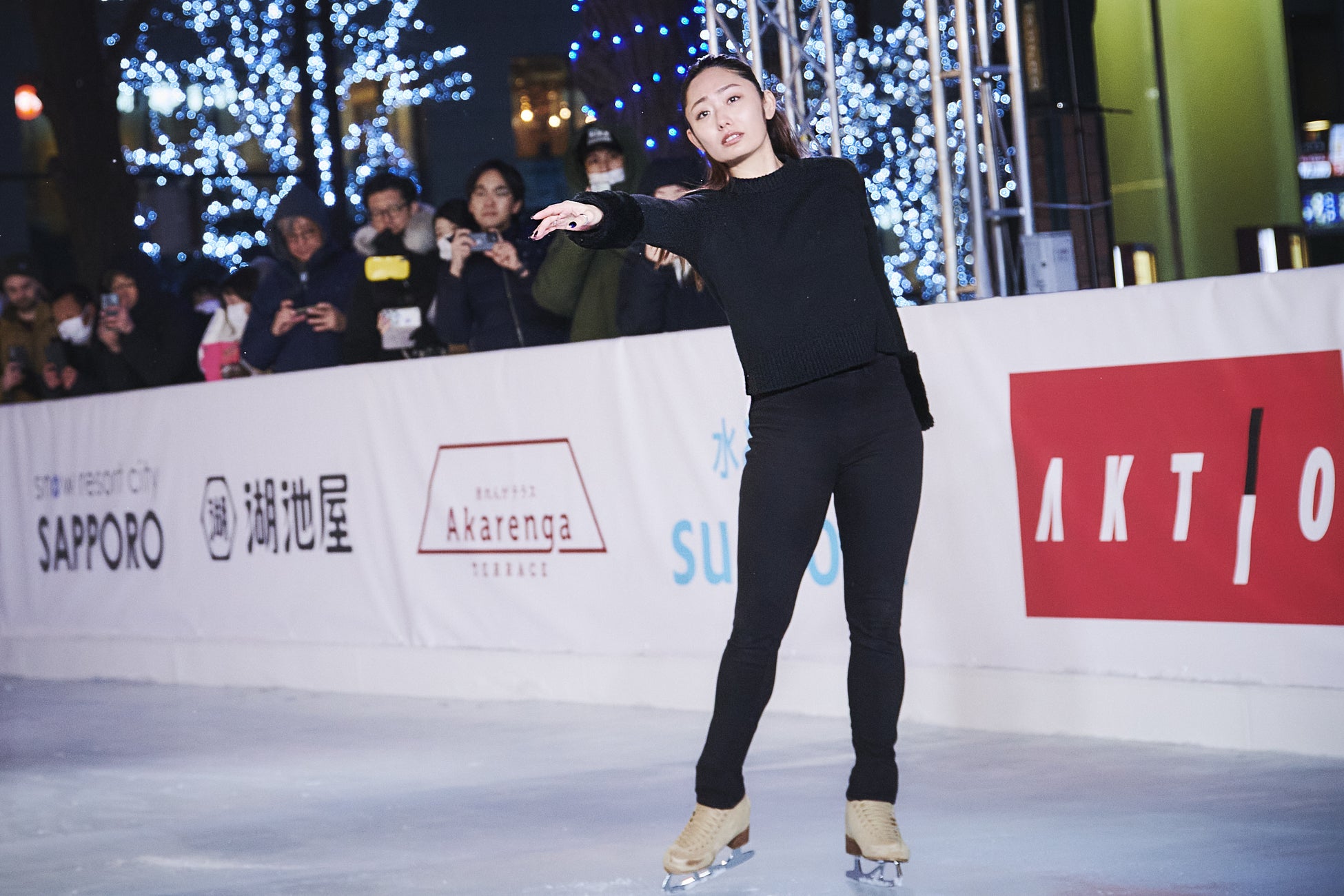 北海道庁赤れんが庁舎前の広場で開催される「スマイルリンクさっぽろ」でスケーティングを披露